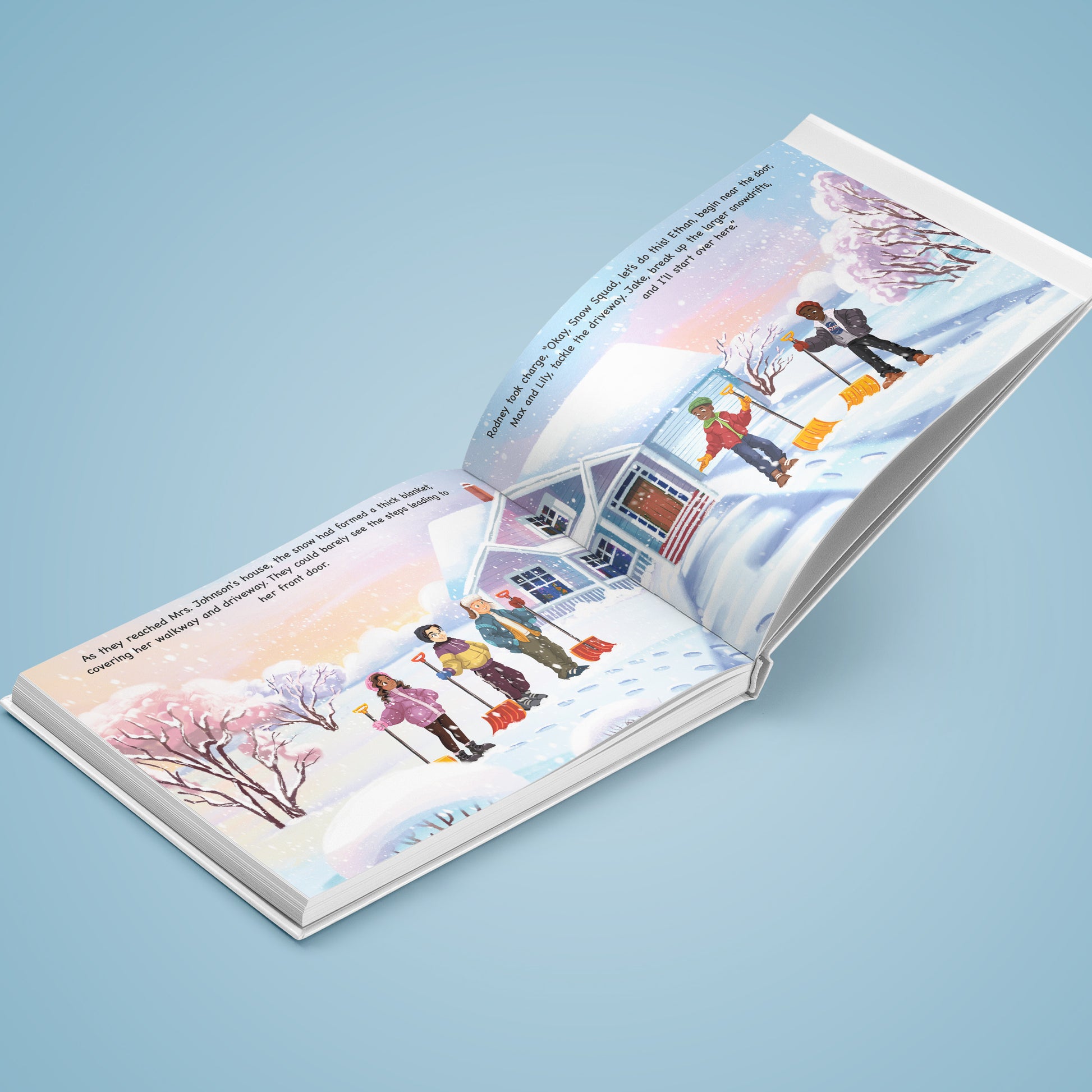 In The Snow Squad’s Winter Rescue, readers follow Rodney’s journey as he teaches that acts of service don’t stop when the seasons change. From helping the elderly clear their paths to making sure single parents and veterans can safely get to work, this inspiring story shows how teamwork, generosity, and a bit of snow can bring people together.